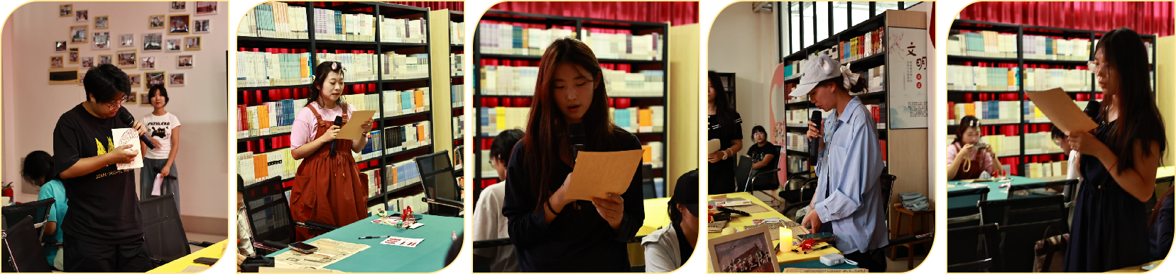 活动过程中,师生们全情投入:在“雾都密电”环节,大家翻阅《红岩》书籍抢答人物谜题,精准识别成岗、江姐等革命角色;“国庆谜底猜一猜”环节,从五星红旗到开国大典,从东方红一号到辽宁舰,师生们在竞猜中重温国家发展历程;“我心中的红色封面”创作环节,大家用马克笔、贴纸在空白书套上勾勒红色记忆,分享设计灵感;“家国情怀成语飞花令”“心中红色家书”环节,更是以文化共鸣传递爱国情感,让红岩精神与国庆家国情怀深度交融。