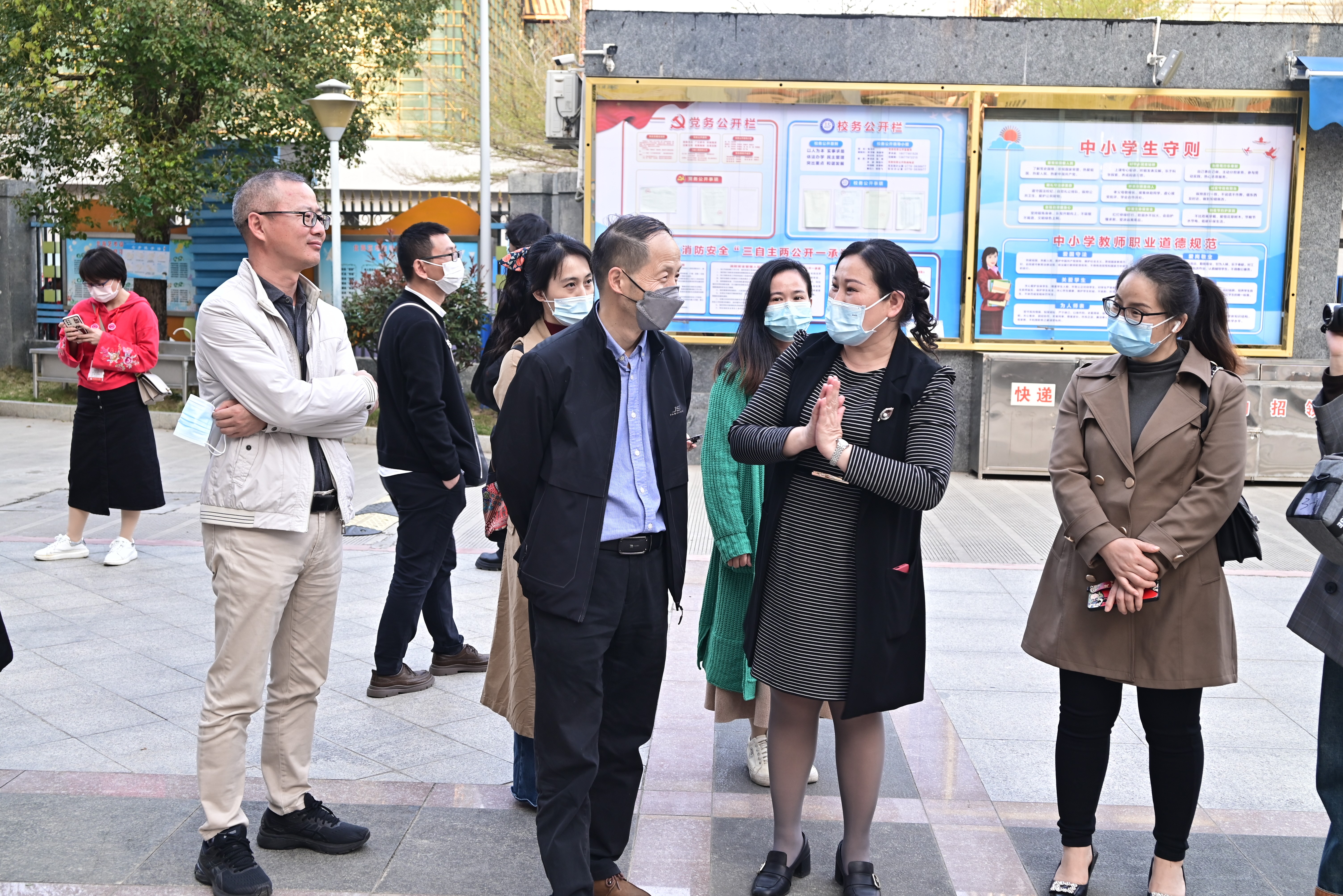 在王斌副校长、人文教育学院熊秀峰院长、李谦副院长、邓欢副书记带领下,艺术教育、学前教育、舞蹈表演、汉语言文学、哲学五个教研室主及部分骨干教师等一行人的陪同下,郭庆教授对北海艺术设计学院附属学校实践基地进行考察。北海艺术设计学院附属学校校长包玉红对考察团队来访热情欢迎,并带领考察团参观学校,在校训“道德”石前,包校长向郭教授及考察团成员介绍了两校一衣带水,一脉相承的历史渊源,对在两校的合作过程中近年来北艺对附校的帮助与支持,真诚的表达了感谢。随后一行人在学校会议室进行了深入的座谈和交流