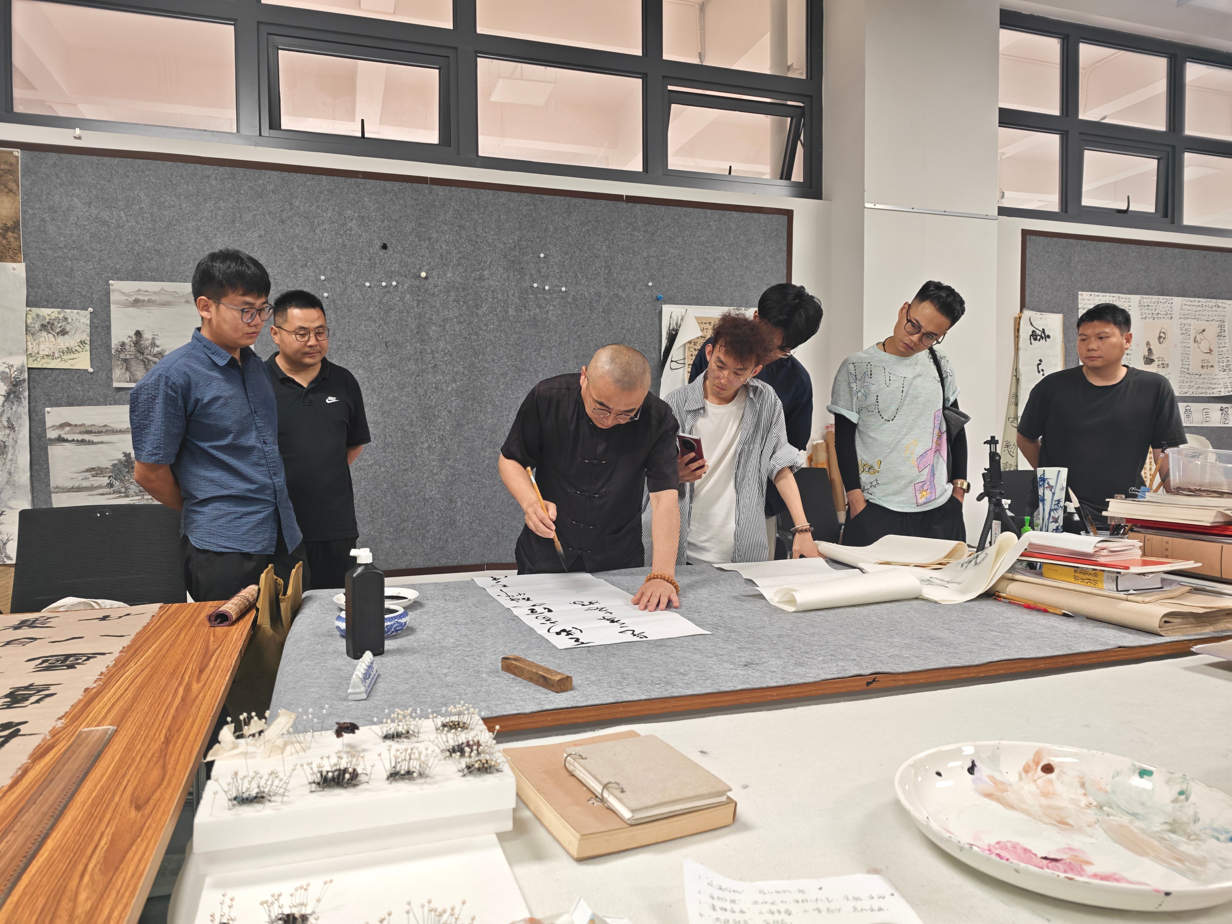 本次活动以座谈与现场创作相结合的形式,搭建了高水平的书法艺术交流平台,深化了师生对书法学习与创作的认知,为学院教学及人才培养提供了有益参考。未来,书法学院将持续开展此类高品质艺术交流活动,丰富教学形式,深化学术内涵,助力师生提升专业素养,推动书法教育创新,传承与弘扬优秀传统文化。(廖宝祺/摄)