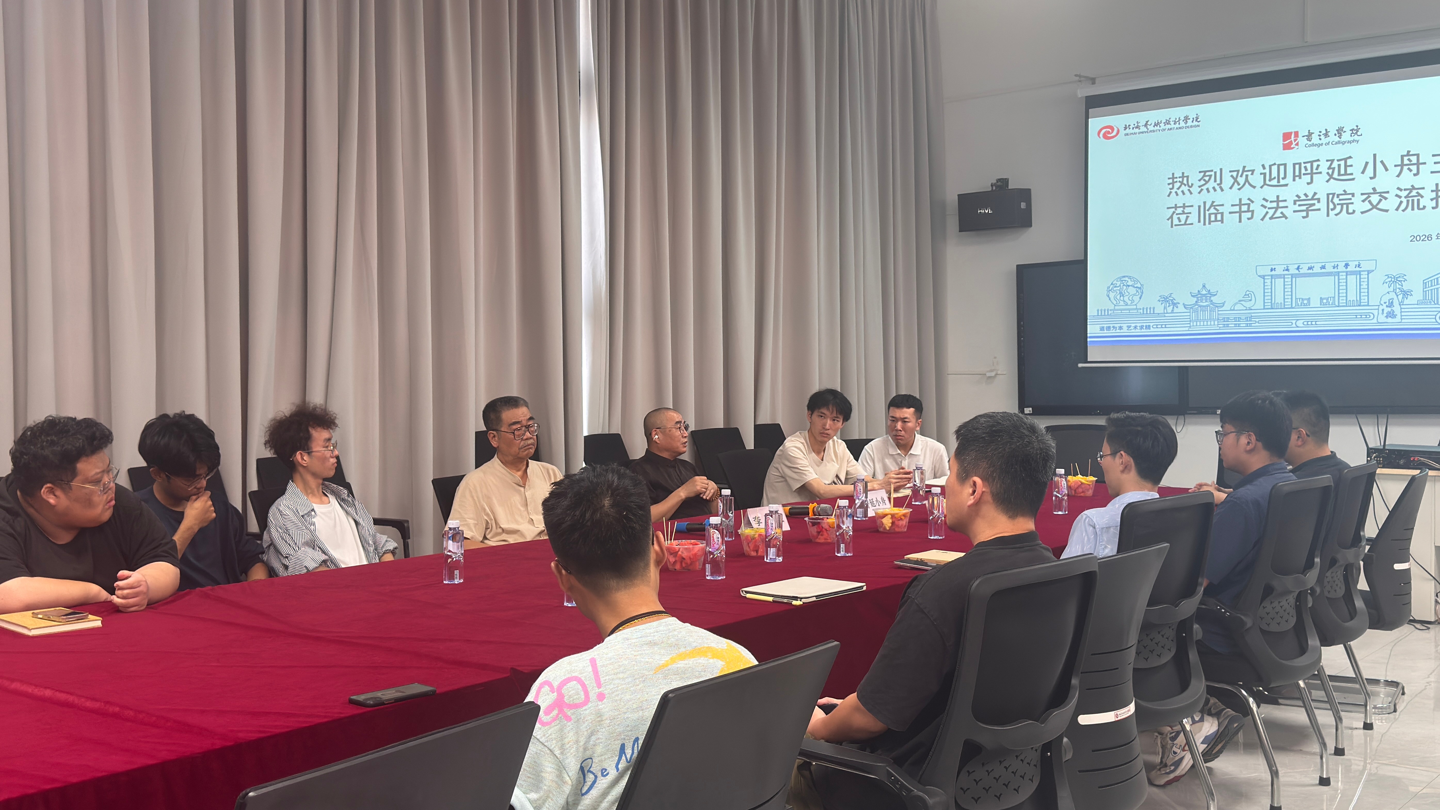2026年3月30日,书法学院特别邀请西安市书法家协会副主席、陕西省书法家协会理事呼延小舟,以及西安市书法家协会第五届副主席、西安美术学院客座教授李和生莅临学院,在艺德楼507书法教研室与教师及学生代表开展书法交流活动。此次活动包含书法艺术座谈会和交流笔会两个环节,为师生提供了兼具专业性与实践性的书法艺术交流体验。
