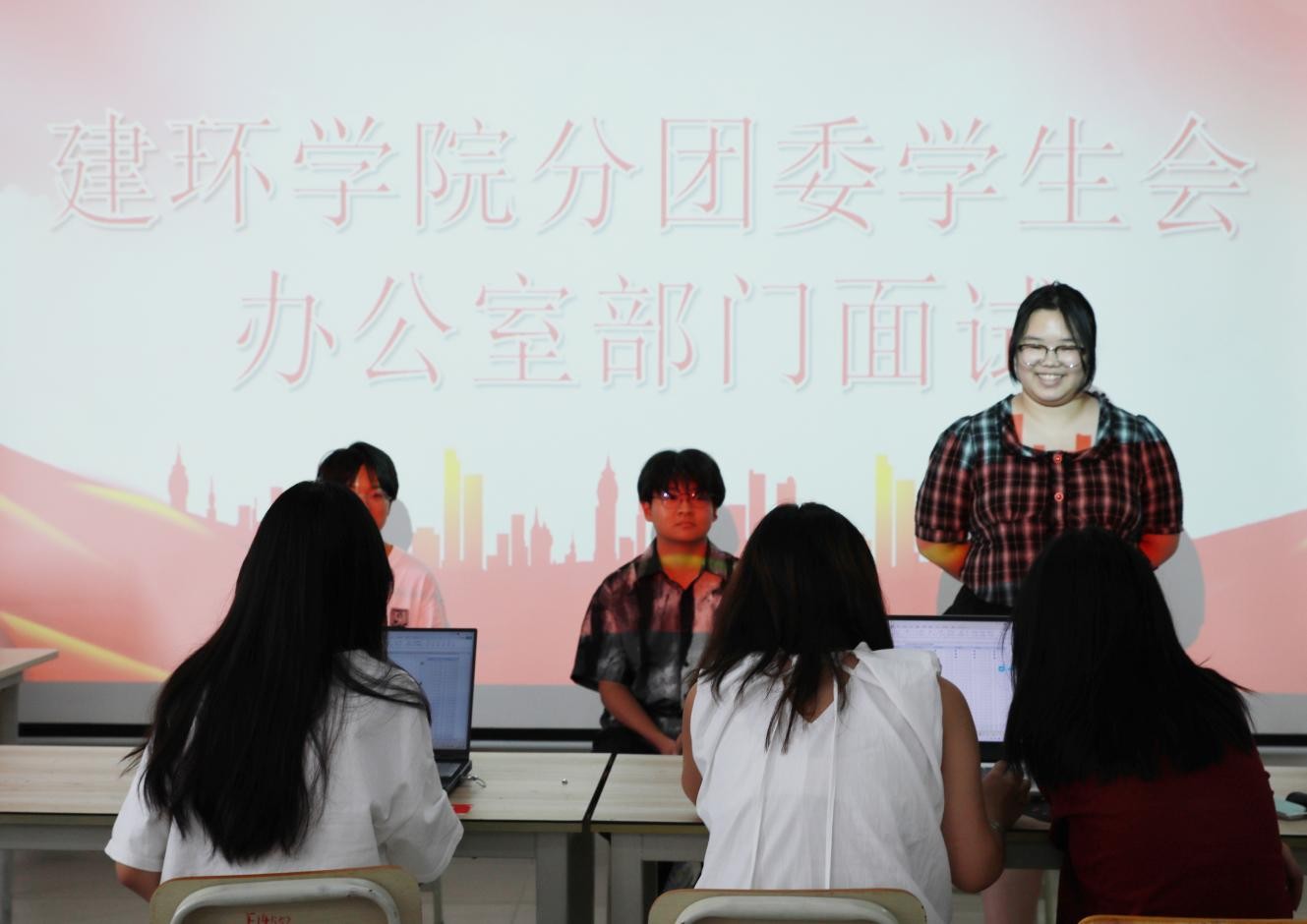 本次分团委学生会的招新包括组织部、宣传部、青志协、办公室、礼仪主持部、文体部、学术部7个部门。旨在汇聚学院内外有志青年,搭建梦想与现实交织的璀璨舞台。诚挚邀请怀揣激情与梦想的学子,共绘青春斑斓画卷,为校分团委学生会注入源源不断的青春活力与创新动力。各部门部长认真筹备本次面试流程,面试现场经精心布置,洋溢着朝气蓬勃的气息,墙上张贴的招新海报,更是添上了几分青春的色彩,静候着每一位面试者的到来。