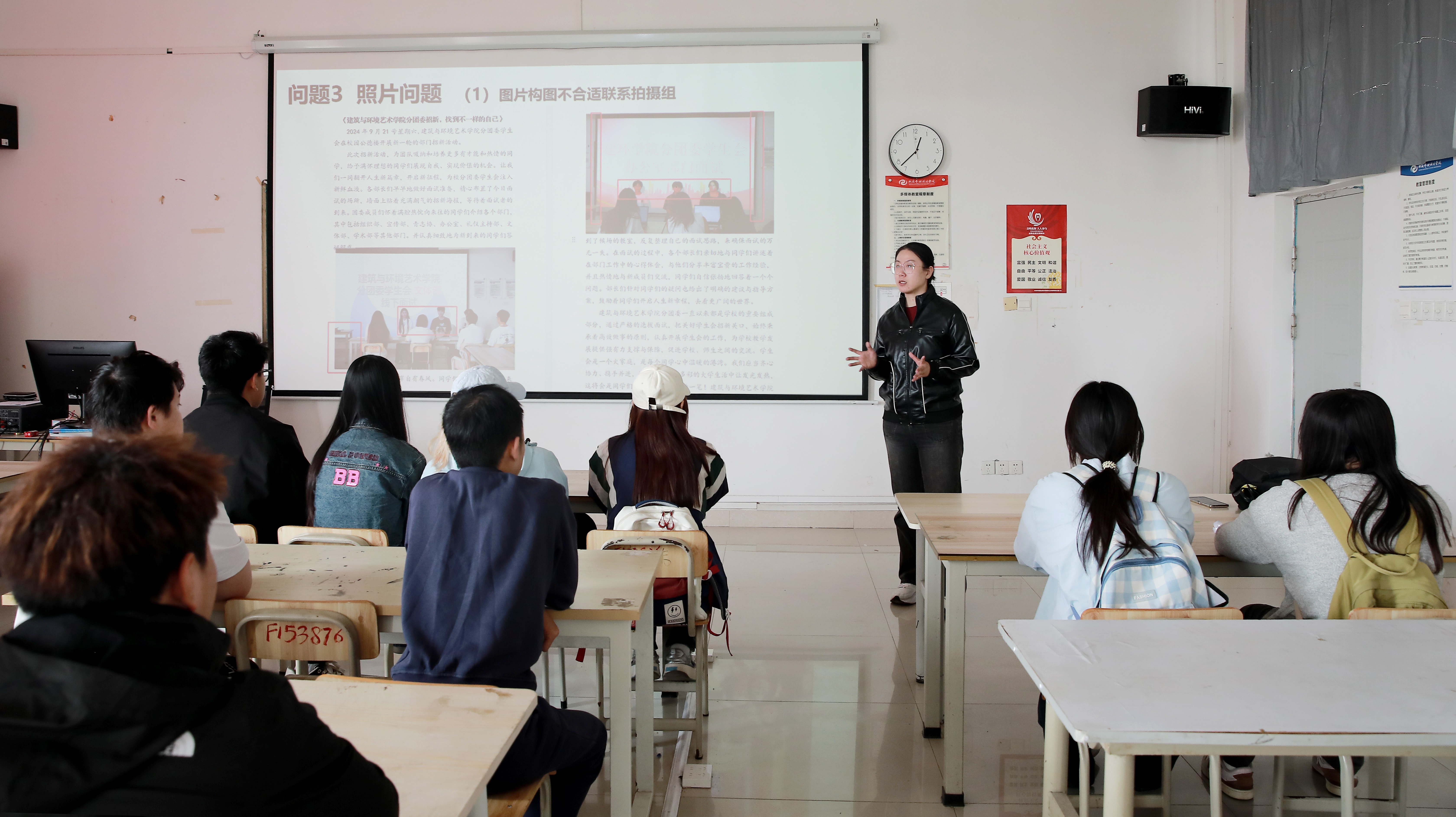 本次培训会以“夯实写稿与摄影基础,提高专业能力”为核心目标。会议伊始,陈宣辰老师简要概述了宣传部的写稿和摄影工作,明确表达了对兼顾摄影与写稿部员发展方向的支持。她结合自身多年新闻采写经验,分享了自身及学长学姐的成果案例,从新闻稿的基本分类、框架搭建入手,结合实例深入剖析新闻稿格式。在传授标题、导语、主体、结尾的创作技巧时,她强调标题要开门见山,以最简洁的文字精准概括新闻事件,导语则需精炼。通过这些精炼的讲解,在场的部员们对新闻写作有了更为清晰、全面的认知。