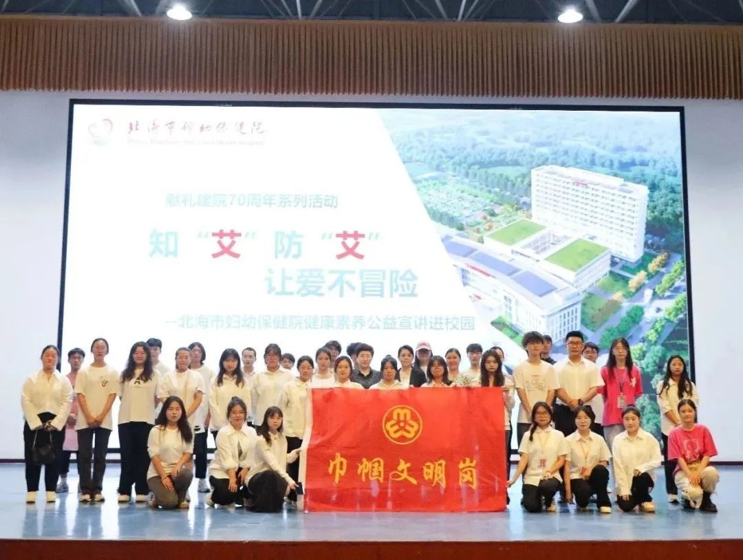 11月1日晚7:30,北海市妇幼保健院妇科副主任张莉于我校西校区大礼堂,为我校师生带来了一场主题为知“艾”防“艾”,让爱不冒险的精彩讲座。