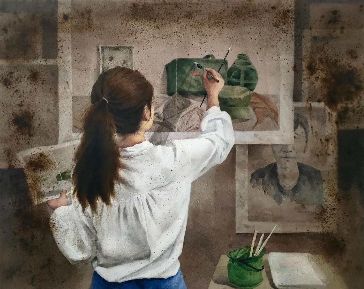绘画 1906 班 周俞均《旧时光》106×76cm 水彩 指导教师:刘广滨、郭珂