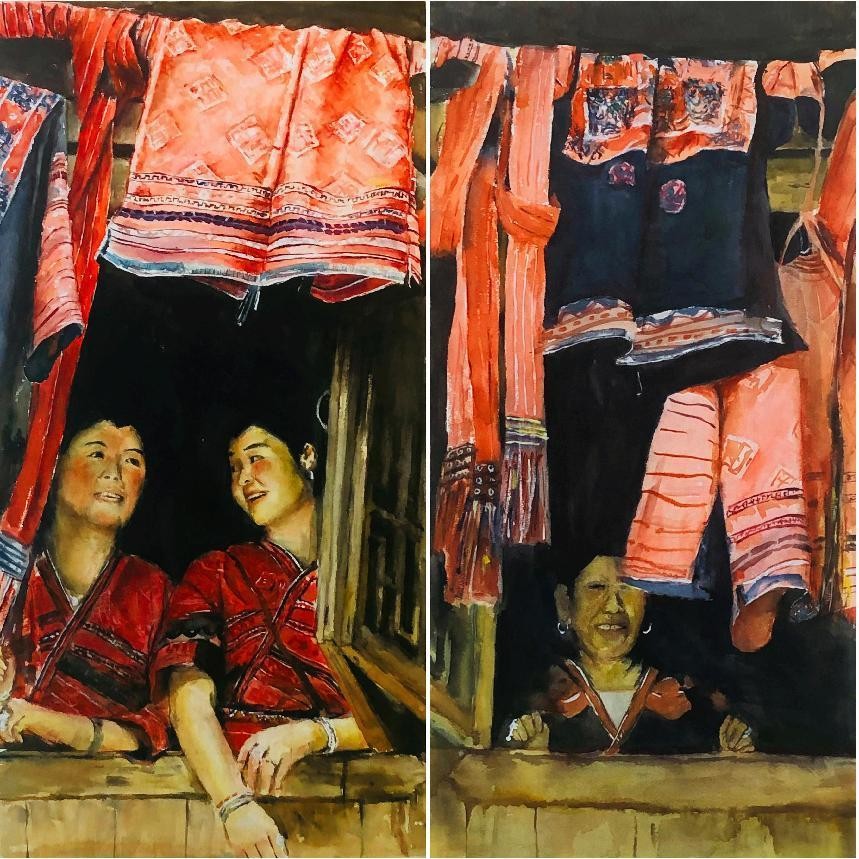 绘画 1906 班 麻镇显《红瑶晒衣节》76×76cm 水彩 指导教师:刘广滨、段凝