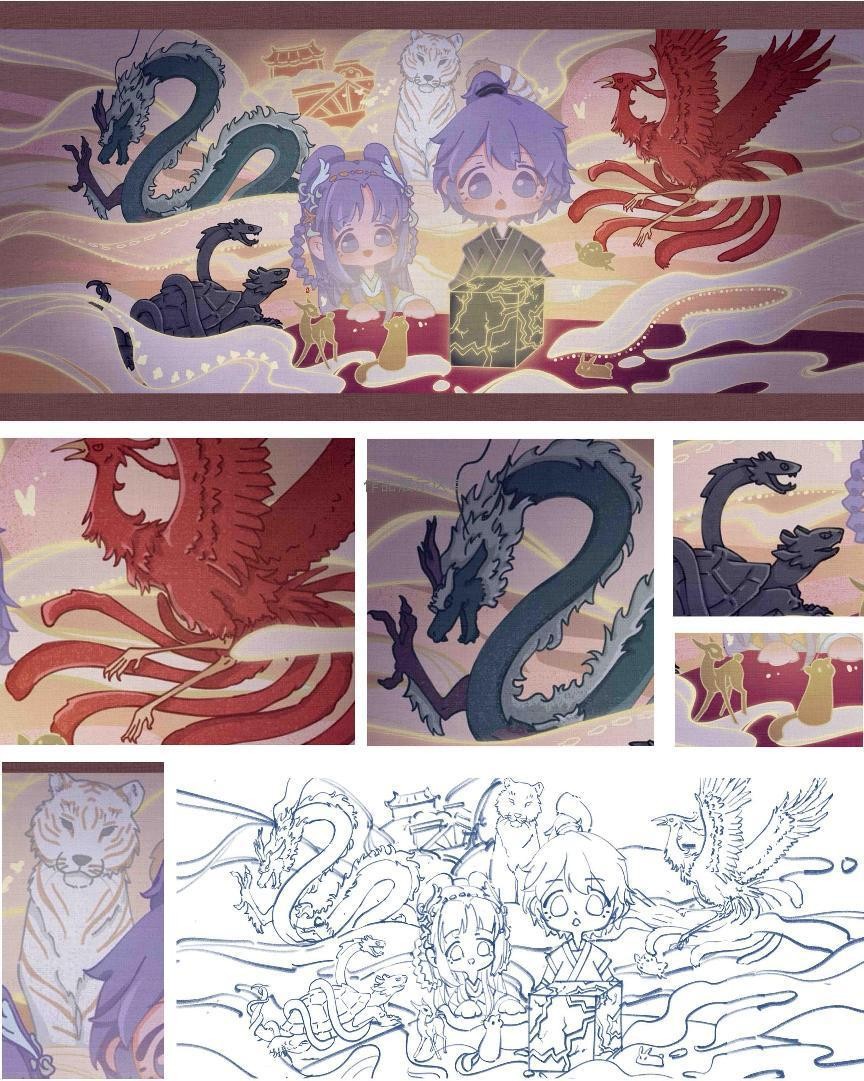 绘画 1905 班 池玲玲《神兽显现》 指导教师:孙海洋