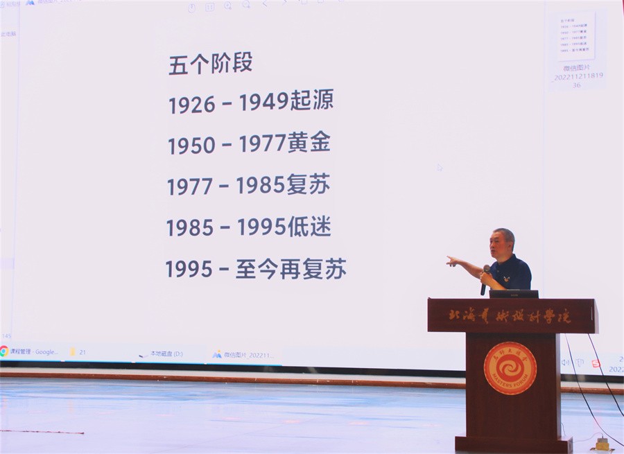 随后,王钢教授就本体动画引领的产业面临挑战展开讲授。王钢教授表示,动画的创作内容在选择中国经典的同时,也要将视角放在当下,展现当代的人民生活面貌,反映新时代的民族精神。他还提到要以本体动画为核心,回归中国学派,重视动画中意象化的处理,传承中国特色的表演体系。他希望大家与时俱进,多元化、多视角的看待事物,不断学习新技术与技艺,增强自身的艺术素养。