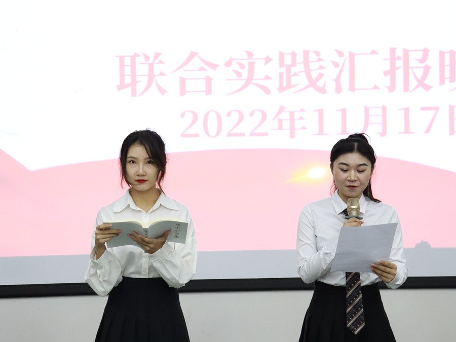 11月17日晚,依托马克思主义学院和动画与传媒学院共建的思政课实践教学研习基地——红色播音创作室,以朗诵演出的形式,在公德楼107联合举行了《马克思主义基本原理》与《播音创作基础》课程实践教学成果展示汇报会。马克思主义学院院长姜献生教授、动画与传媒学院副院长杨红夷副教授莅临指导。播音与主持艺术专业2021级全体学生参加,两门课程的教研室主任及任课老师也亲临现场。