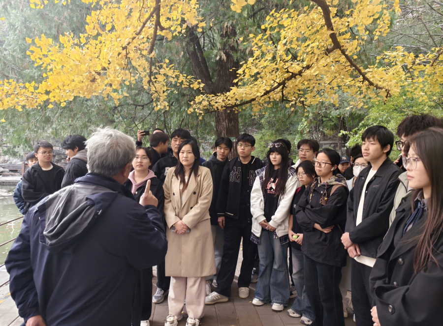 10月27日,一场耳目一新的思政课在北京香山双清别墅前银杏树下举行,由马克思主义学院院长姜献生教授主讲,约180名大四学生参加了此次现场教学活动。