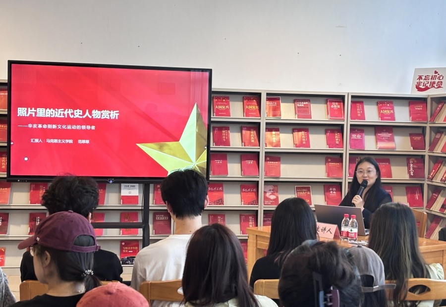 11月15日17:00,本学期红色专题知识系列讲座最后一场在图书馆三楼“红色阅读角”完美落下帷幕,讲座由马克思主义学院范翠翠老师主讲。