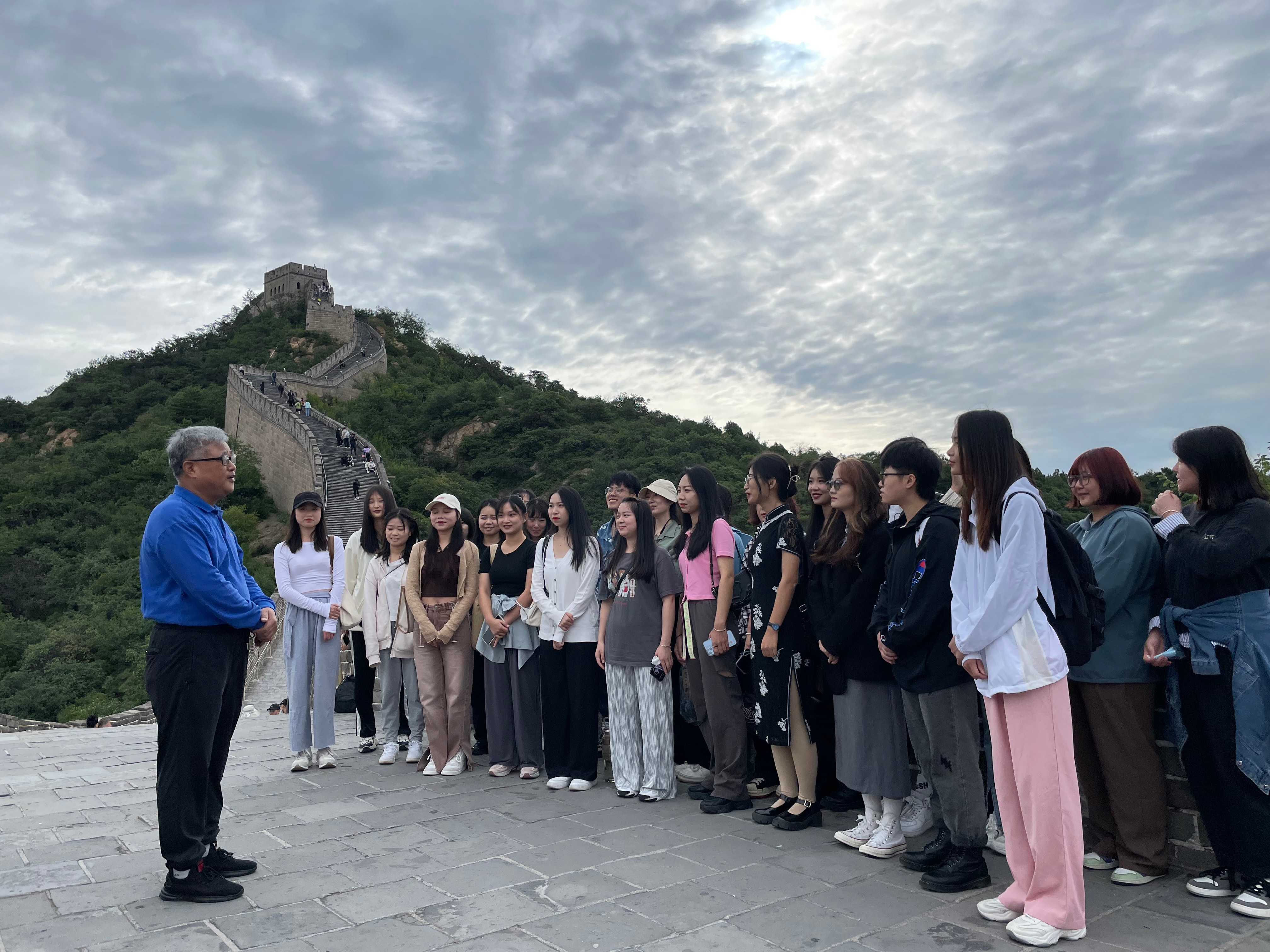 姜教授在长城上给同学们讲爱国教育思政课