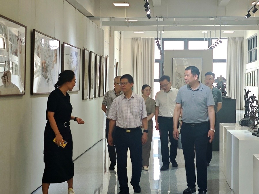 会前,广西大学党委副书记宁旭初一行还参观了我校美术学院、唯物楼、艺德楼师生设计作品展。