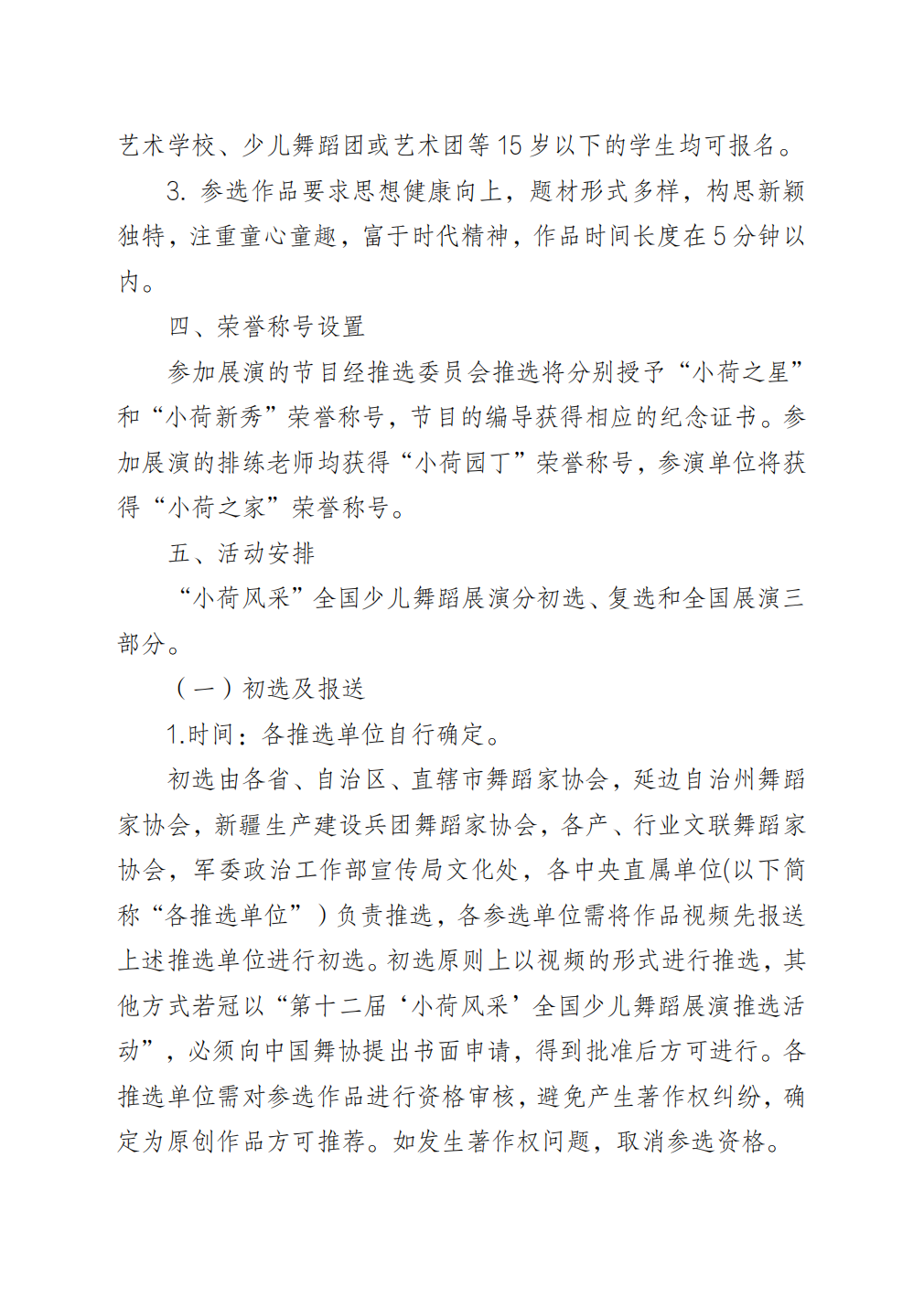 关于举办第十二届“小荷风采”全国少儿舞蹈展演的通知