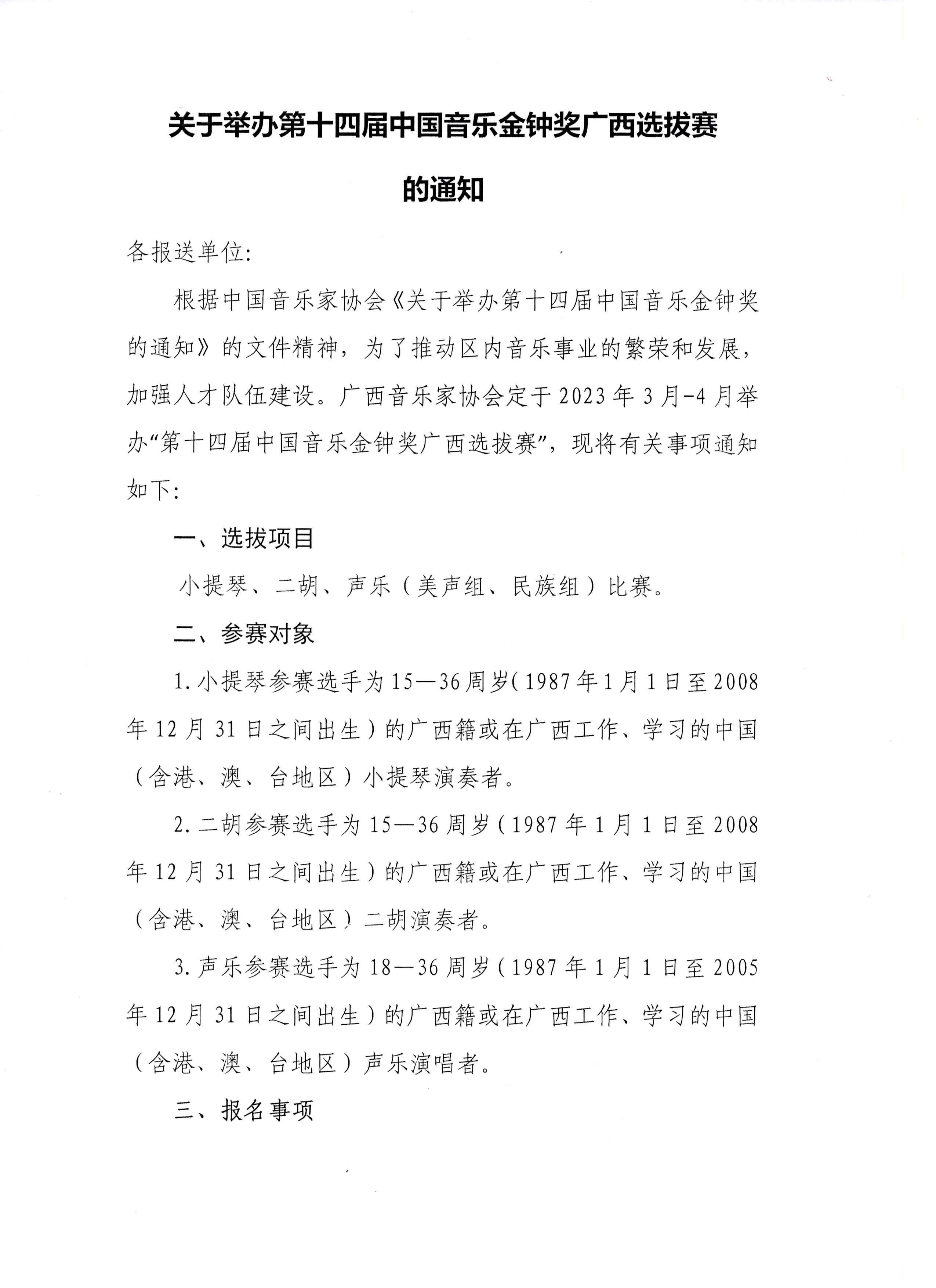关于举办第十四届中国音乐金钟奖广西选拔赛的通知