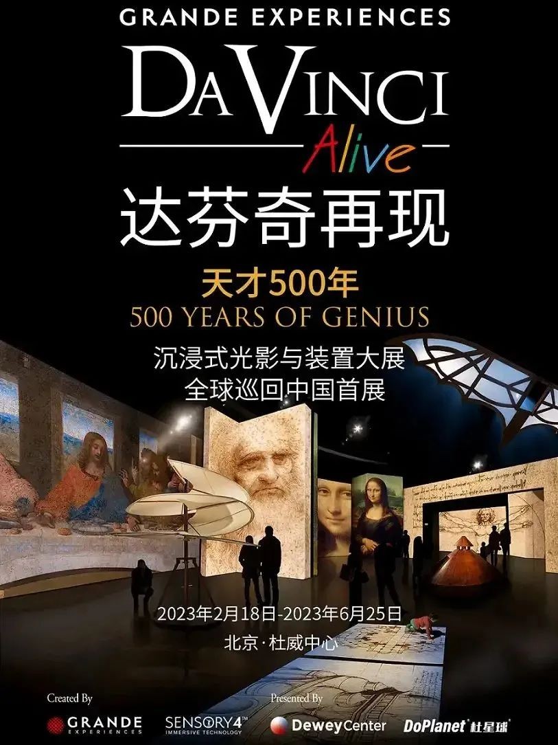 “达芬奇再现”通过电影级数字多屏技术Sensory4™打造声光电及嗅觉结合的视觉盛宴。运用几十组高清激光多屏互动呈现的方式,让体验者身临其境的看到音乐、听到画面,走入作品中。