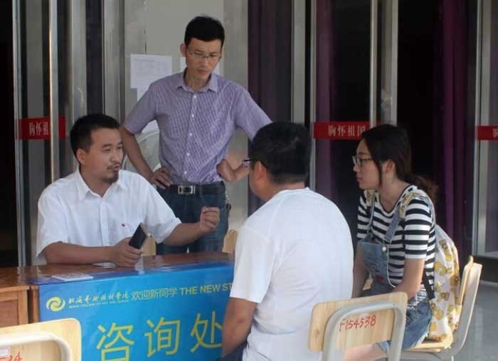 校园各处都设有咨询处,设计学院由李林平院长亲自负责,不厌其烦地接受新生及其家长的咨询,最大程度的解决学生和家长的困惑。同时我院教师队伍活跃在各个学生报到处,缴费处,生活用品及军训服装发放处等部门,齐心协力积极配合好迎新工作。 挥洒汗水,辛劳中浸满快乐校外接站的迎新志愿者们,早出晚归、坚持不懈;驻守在学院公寓楼固定站点的志愿者们团结一心、并肩战斗,不厌其烦地接受新生及其家长的咨询,细心地提供新生住宿登记、物品领取、引导入住等一站式服务;活动在流动站点的志愿者们还做起了三轮车师傅奔波往返在我院校园内,为新生运送行李。