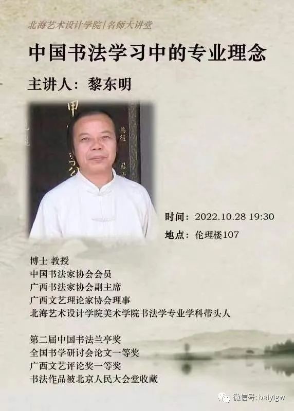 讲座预告|黎东明《中国书法学习中的专业理念》