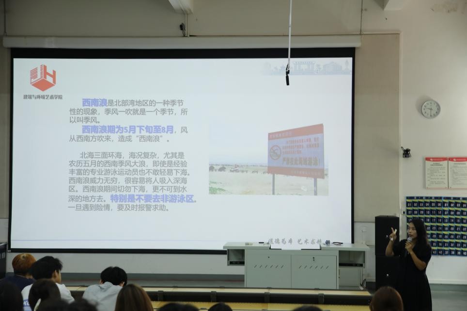 9月12日,入学教育首课聚焦“安全”主题。学院党总支副书记曲玥以“守护成长,安全相伴”为核心,从校园安全、实验室安全、卫生安全、交通安全、食品安全五大维度展开讲解,结合典型案例提醒新生提高风险防范意识。她特别强调,新生需积极参与后续校园安全主题讲座与应急演练,将安全规范融入日常行为,共同营造平安有序的校园环境,确保在北海艺术设计学院度过安全、充实的求学时光。