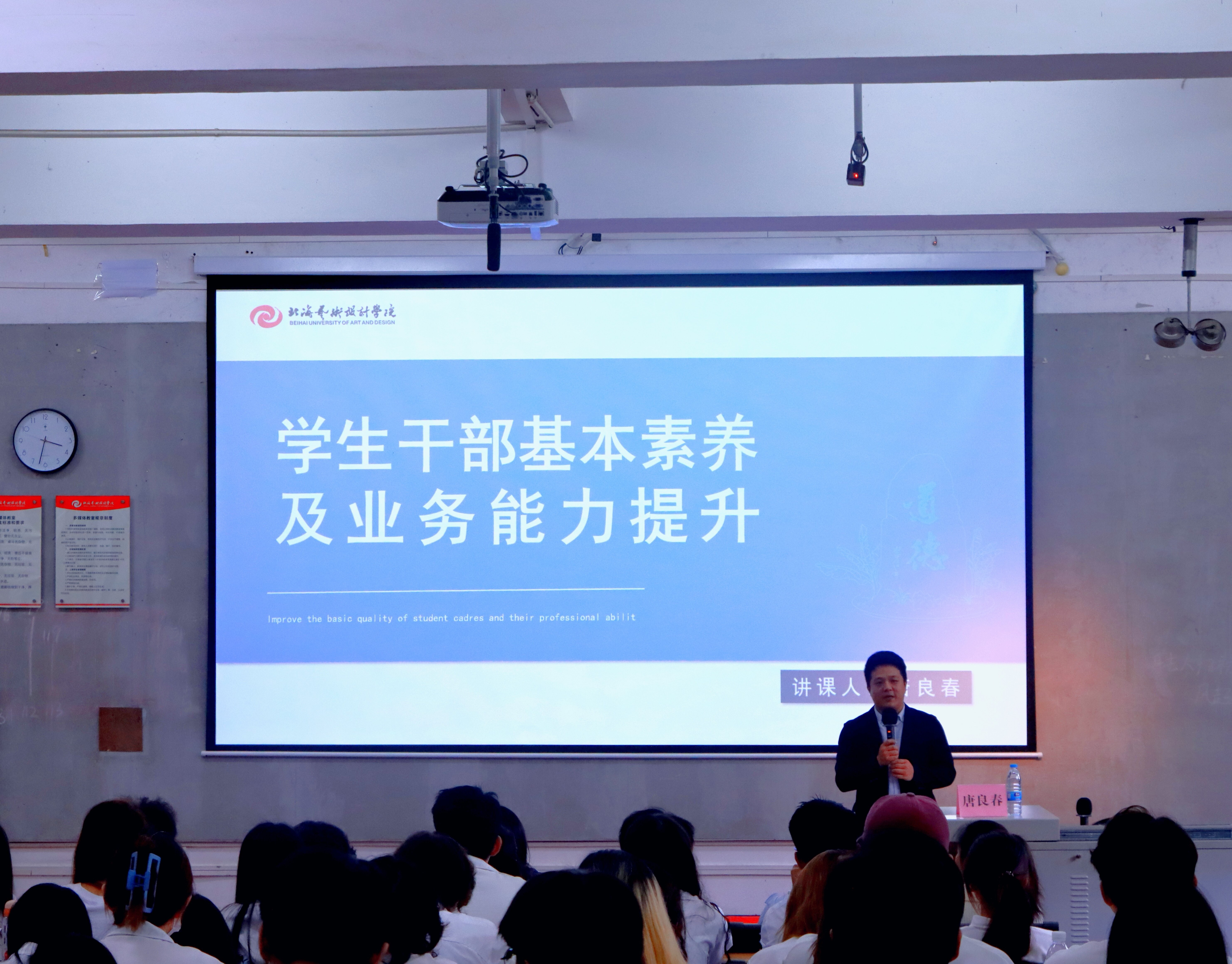 在开班第一讲中,我校团委书记唐良春为培训班学员们带来了《学生干部培训》专题内容。他指出,青年学生应深刻了解自身必备素养与业务能力,并进一步增强自身责任感,成为自信自强、守正创新、踔厉奋发的新时代学生干部,为学校后续活动的更好开展打下坚实基础。