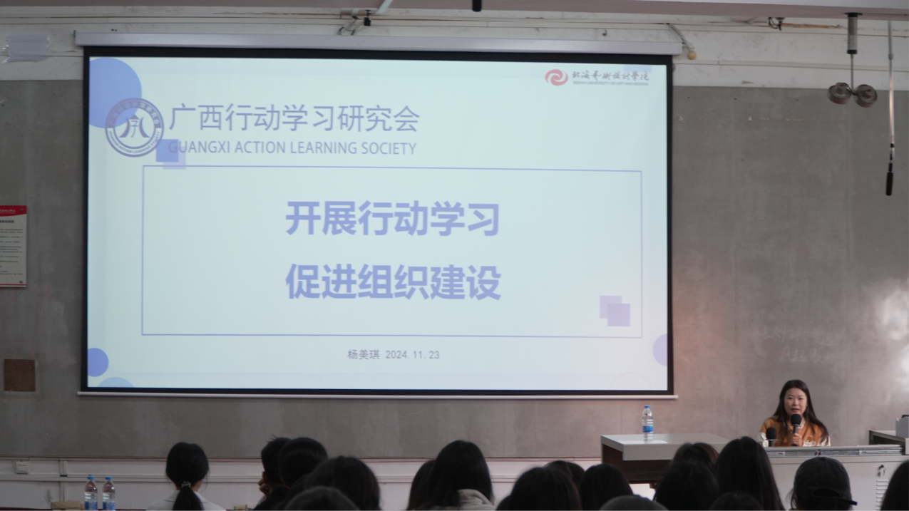 第二讲由团委副书记杨美琪为学员们讲解《开展行动学习,促进组织建设》专题内容。她从理论和实践两方面入手,并将其结合在一起,帮助学员们更加有效地掌握和运用行动学习,切实有效地促进组织建设。