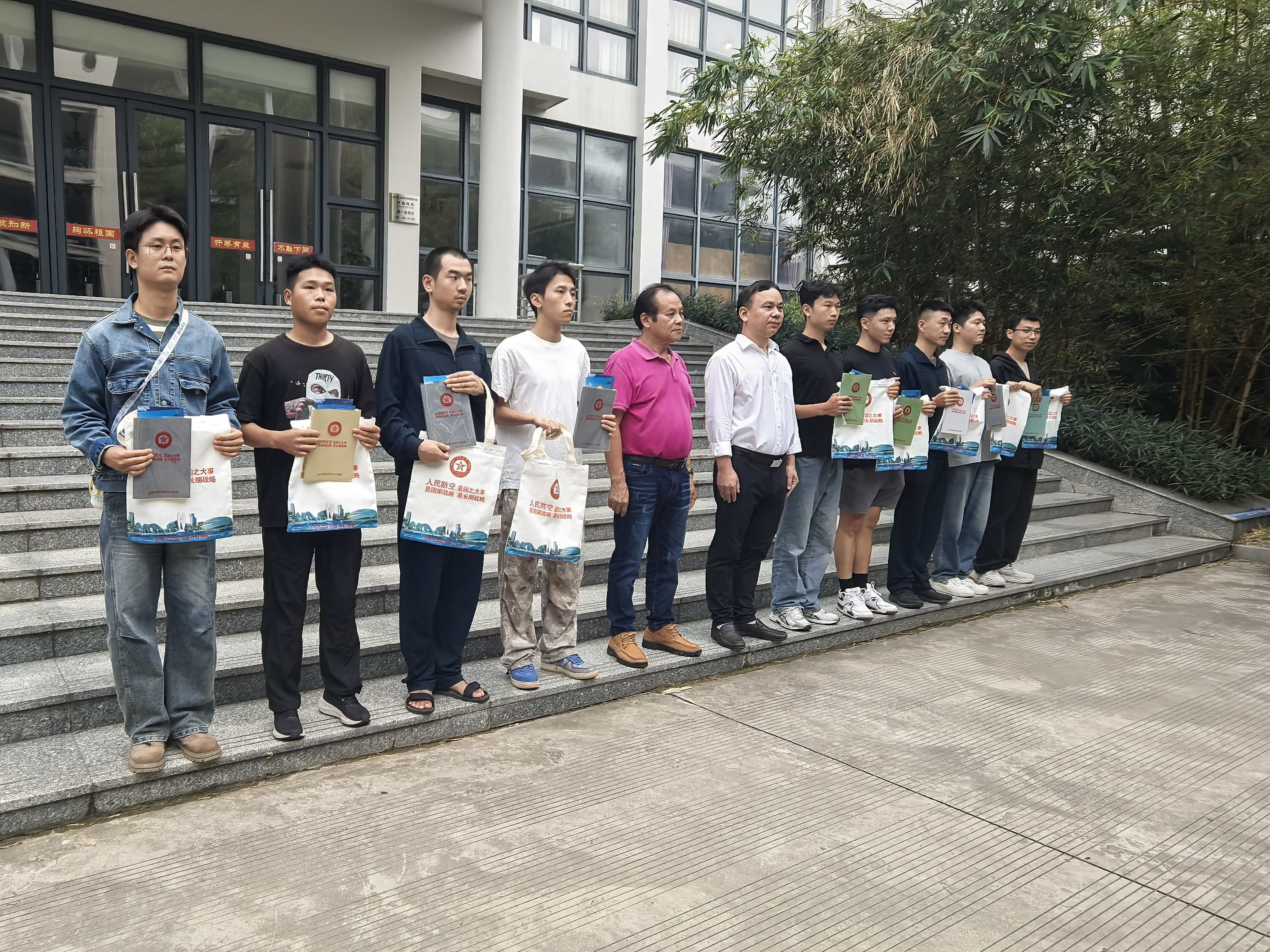 最后,市国防动员办副主任林碧南、学校副校长刘朝雄为学生代表颁发了活动纪念品。宣传人员还为参加活动的学生发放了国防教育、人民防空宣传手册,并现场讲解了国防动员相关的法律法规,引导大家现场学习国防知识和人防技能。