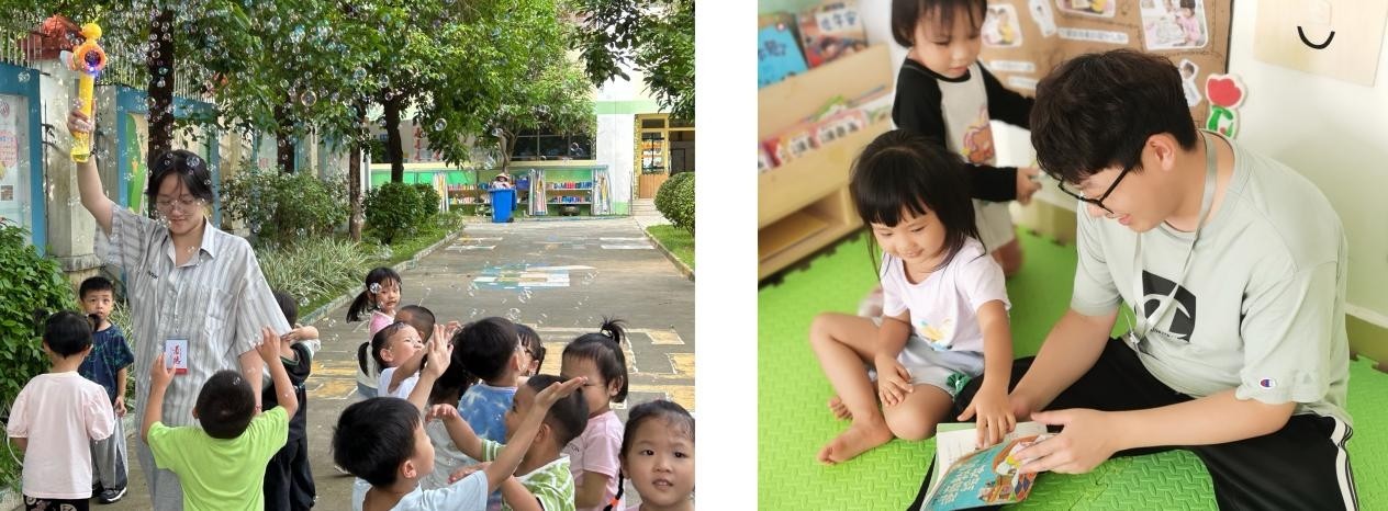 2301班洪梓欣与幼儿游戏                                                                        2301班缪仁文与幼儿阅读绘本
