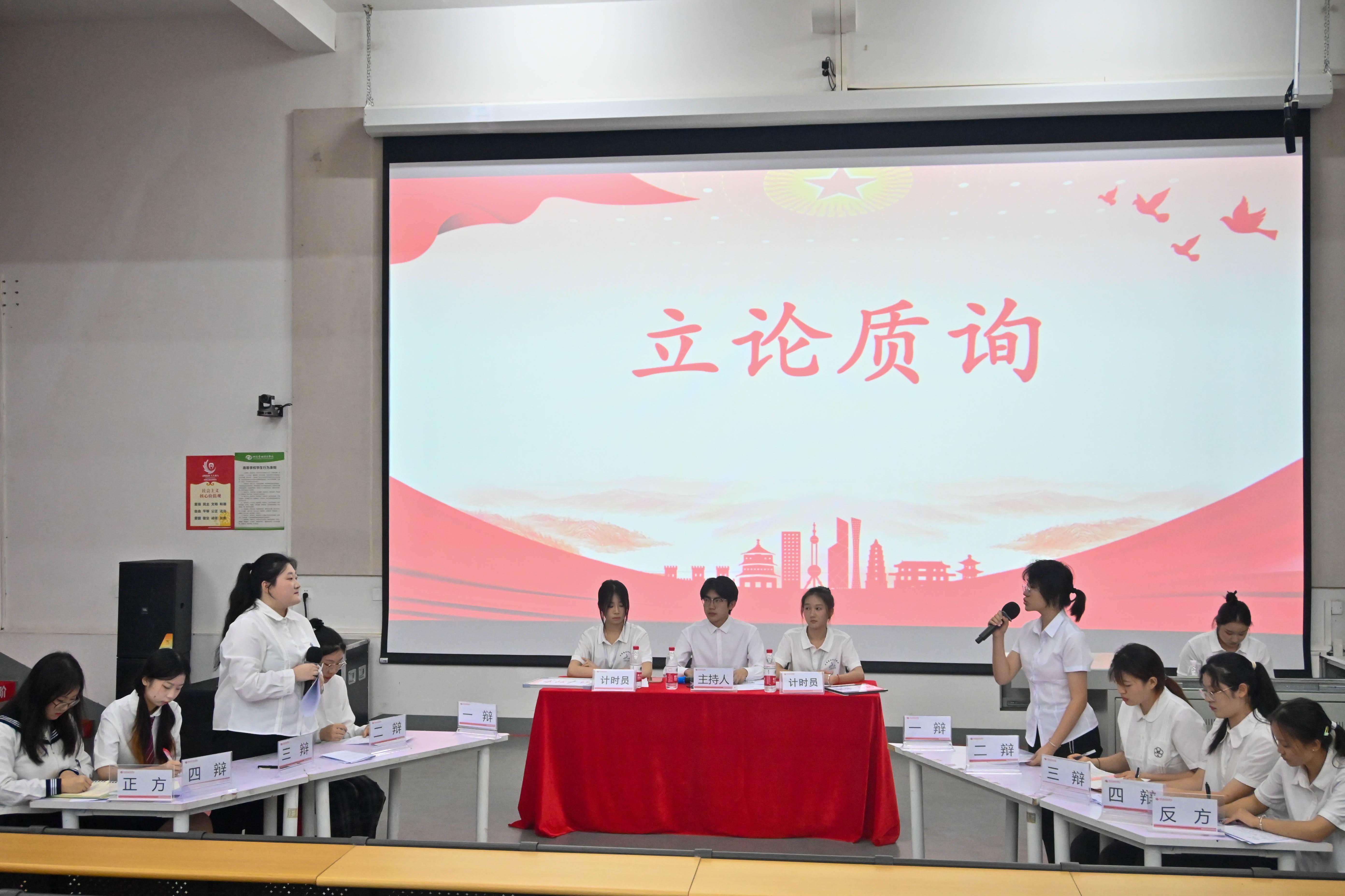 比赛推进过程中,选手们即兴应变、妙语连珠,为此次比赛的观众带来了一场思维交锋的盛宴。正反方从每一个论点的建立到每一次论证的交锋,是选手们经过精心的策划与反复的推敲,深入辩题、潜心锻炼的成果。