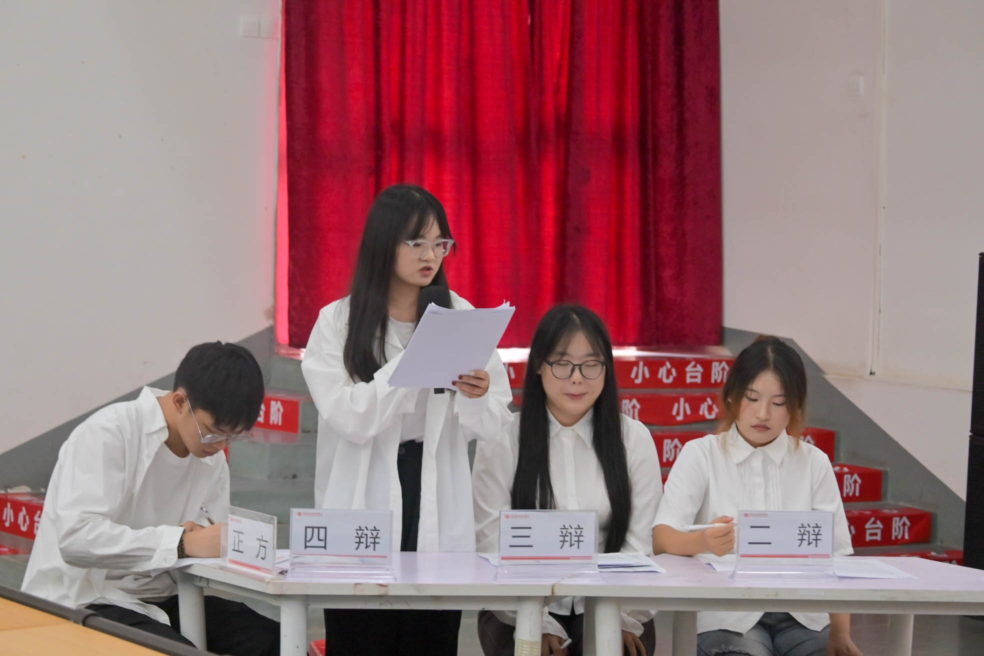 在比赛的最终环节,苔志同心队以出色的表现将气氛推向高潮。经评委老师综合评判,一等奖为苔志同心队;二等为明辨队;三等奖为尔雅队;优秀奖为春风正意正少年队;最佳辩手为汉语言2101班班睿洁同学。