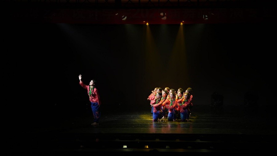 舞蹈表演专业2104班带来的《微亮瞬间》(指导老师:吴明奇、谷敬一)充满了民族风情。《希格希日》中,舞者们以豪迈的舞姿展现了蒙古族舞蹈的独特魅力,让观众仿佛置身于广袤的草原;《抬龙王》以民俗为基底,用生动的舞蹈语言讲述了民间信仰故事,传递出人民对美好生活的向往与追求。