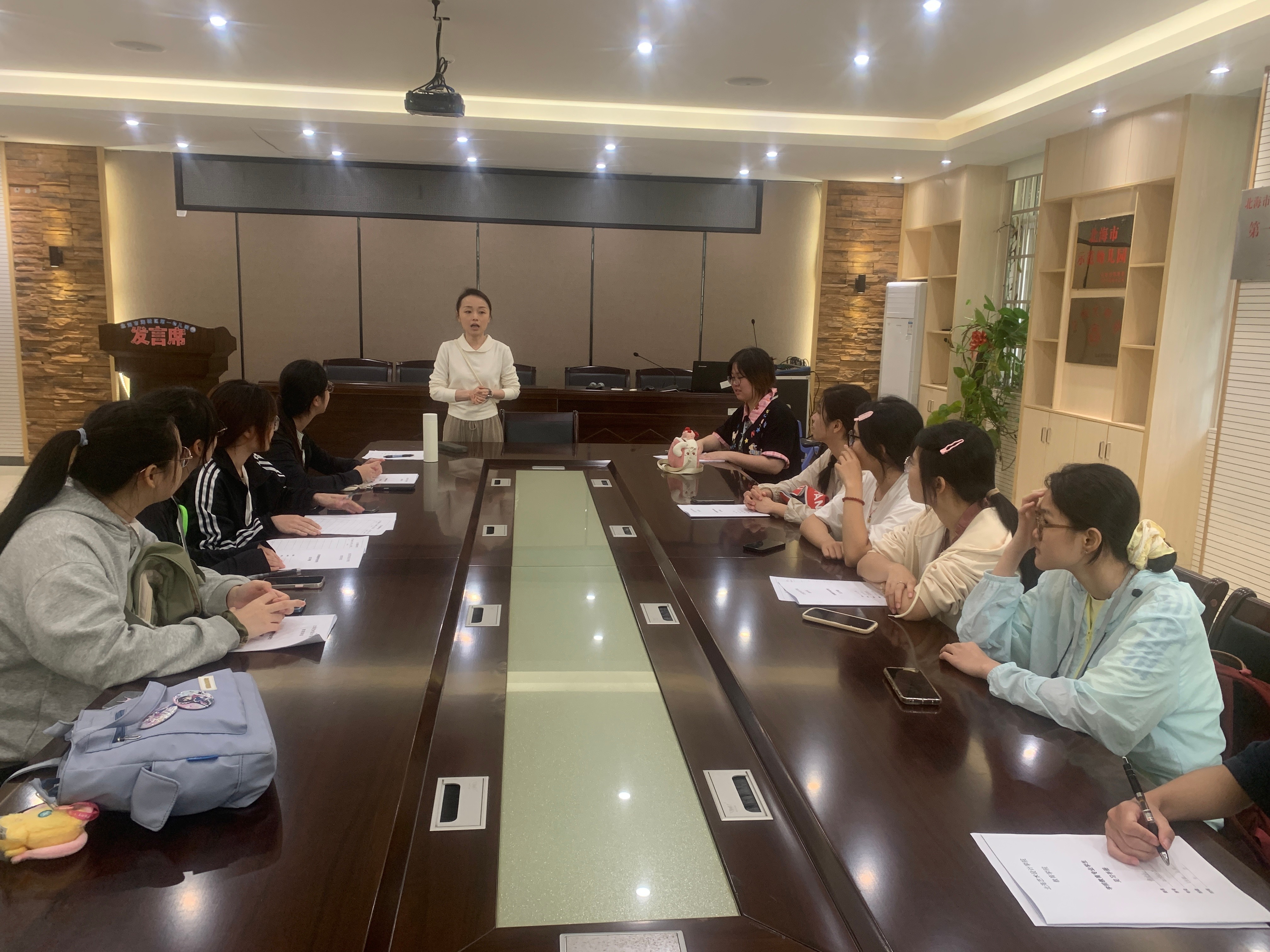 北海市政府机关幼儿园副园长林娜给见习生开展入园培训