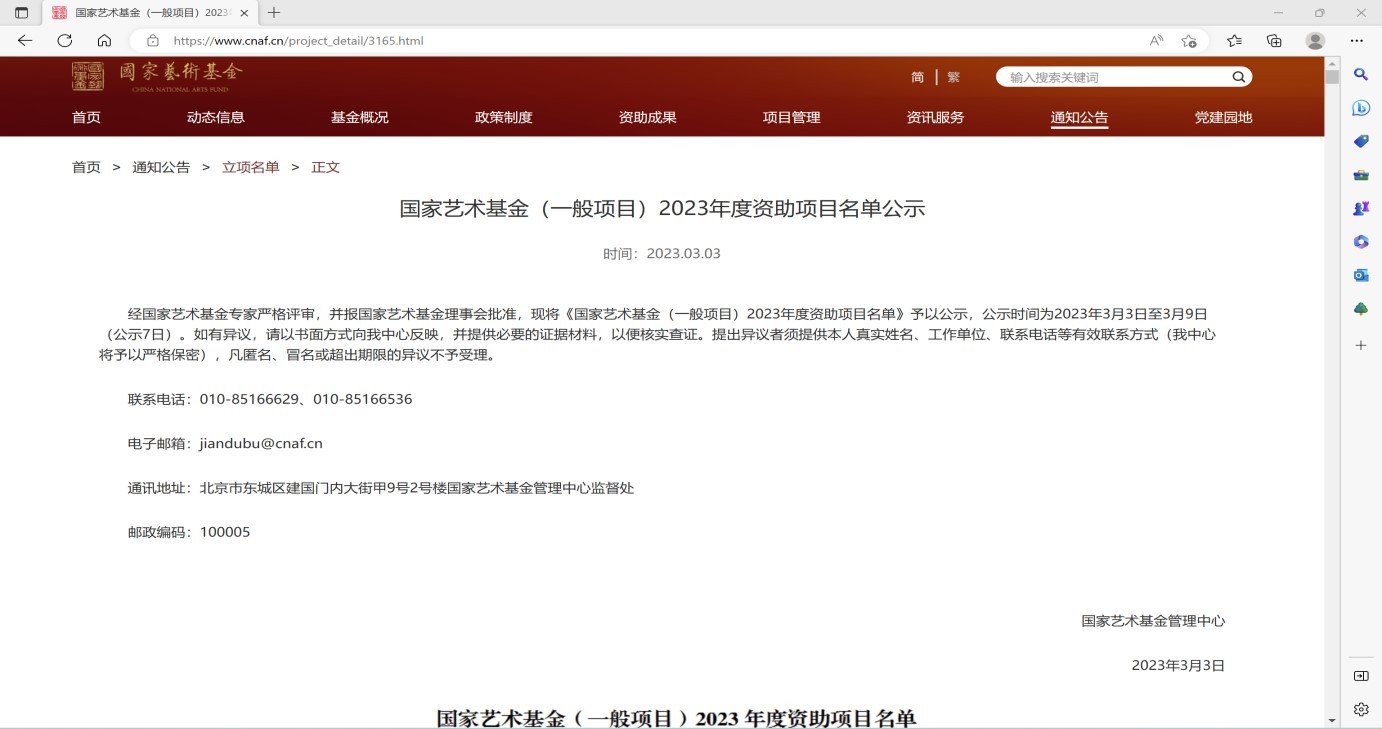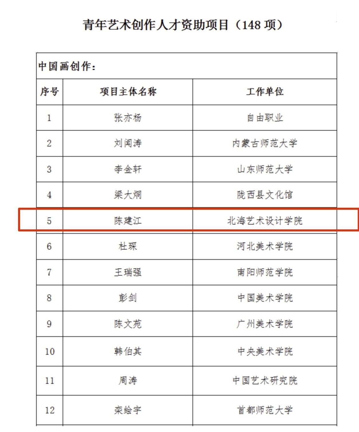 国家艺术基金管理中心33日发布《国家艺术基金(一般项目)2023年度资助项目名单公示》,我校美术学院教师陈建江,获青年艺术创作人才项目(中国画创作)立项,也是我校唯一在获得此类立项的项目。