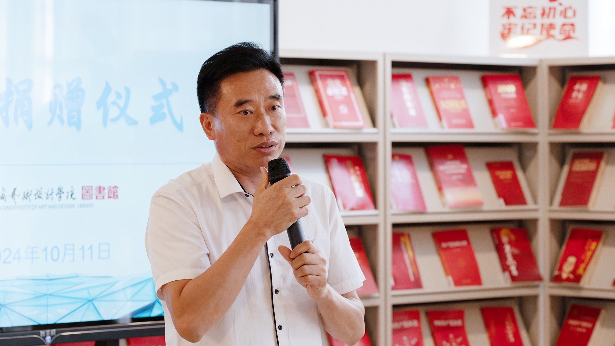 陶立阳副校长在讲话中表示,王伟教授的捐赠对图书馆馆藏建设的推进做出了重要贡献。他鼓励在场师生充分利用图书馆所提供的资源,特别是这批珍贵的杂志,以汲取艺术家的设计思维与创作理念。同时也建议教师在授课过程中,向学生推荐有益的图书以供阅读。陶副校长强调,尽管数字时代为我们提供了诸多便利,但也使得知识趋于碎片化,因此我们需要培养辨别与筛选的能力,将线上与线下资源相结合,以获取更丰富、更有价值的信息。