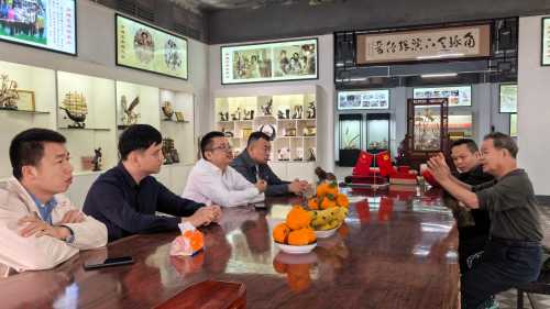 上午930分,学院一行首先抵达合浦金蝠角雕有限责任公司。作为传统工艺的杰出代表,角雕艺术在这里焕发出独特魅力。学院领导与企业负责人就合作事宜展开深入交流,不仅提及鼓励学院师生参与广西工艺美术大赛,企业负责人有望担任评委,为大赛注入专业力量,还针对雕塑课程教学达成共识。学院计划安排相关课程,带领学生亲身体验角雕艺术,深入了解角雕材料及简单技法,并指导学生创作作品参赛,从大学一年级开始,将雕塑专业学生分批培养,设定主题作业,按照比赛要求进行系统培训,共同推动非遗创作的传承与创新。企业方面也分享了大师带领师生获奖的经验,双方期待通过紧密合作,实现共同目标。