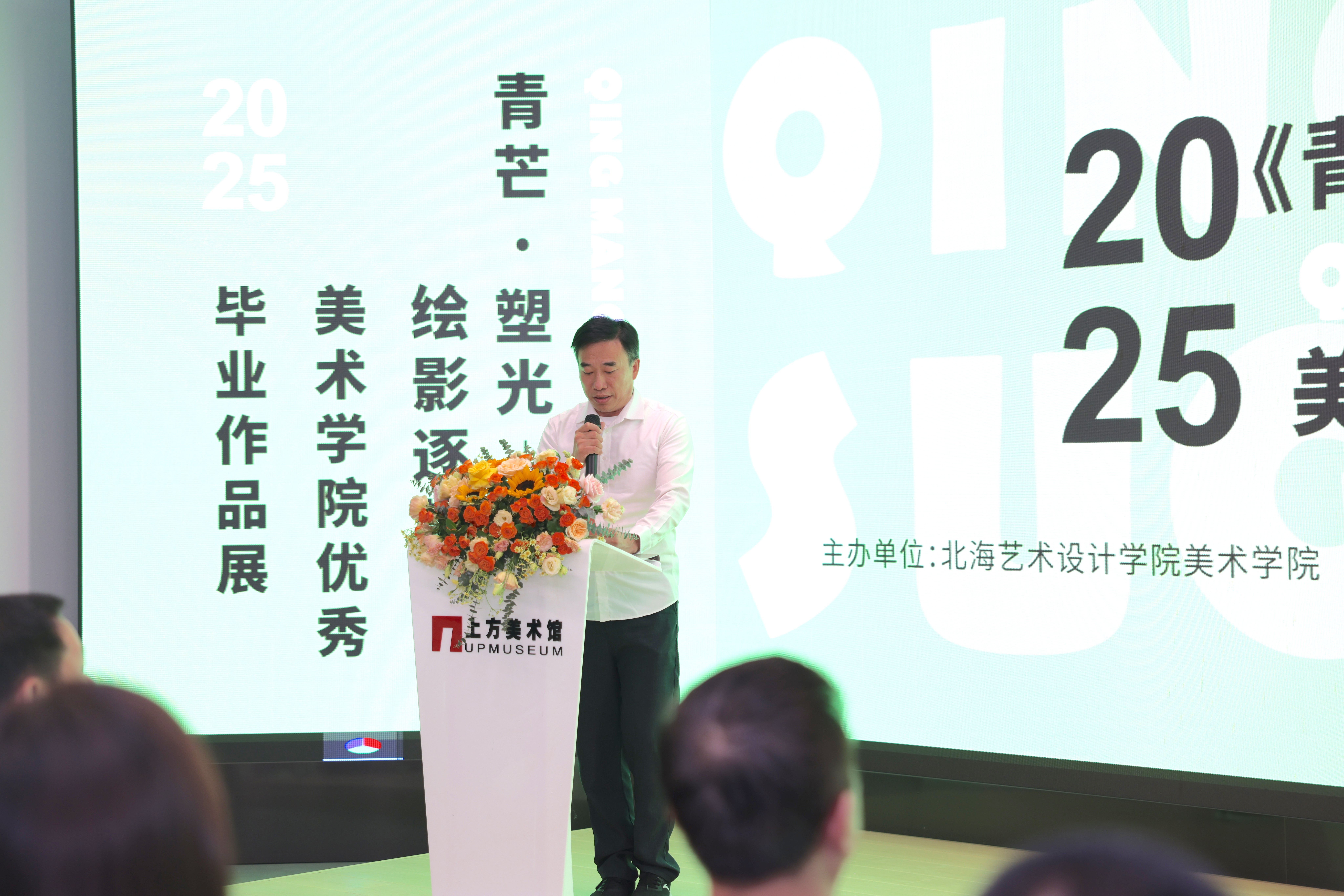 开幕式的最后,由北海艺术设计学院党委书记覃宪儒宣布《青芒·塑光——绘影逐梦》北海艺术设计学院美术学院2025优秀毕业作品展正式开幕。