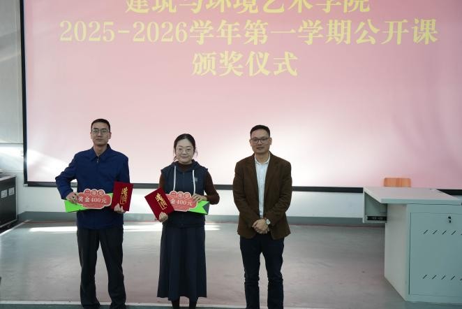 汇报结束后,会议进入颁奖环节,对本学期表现突出的个人进行表彰奖励。在2025-2026学年第一学期公开课表彰中,教务处副处长谭维健、学院党总支书记庞定坤、院长张春东、党总支副书记曲玥、副院长蔡世伟为获奖人员颁奖,鼓励全体教师以获奖教师为榜样,深耕课堂教学,提升教学能力;在2025年学生工作先进个人表彰中,副校长何煜为获奖人员颁发荣誉证书,肯定了学工队伍在学生就业指导、推进思政教育中的辛勤付出。