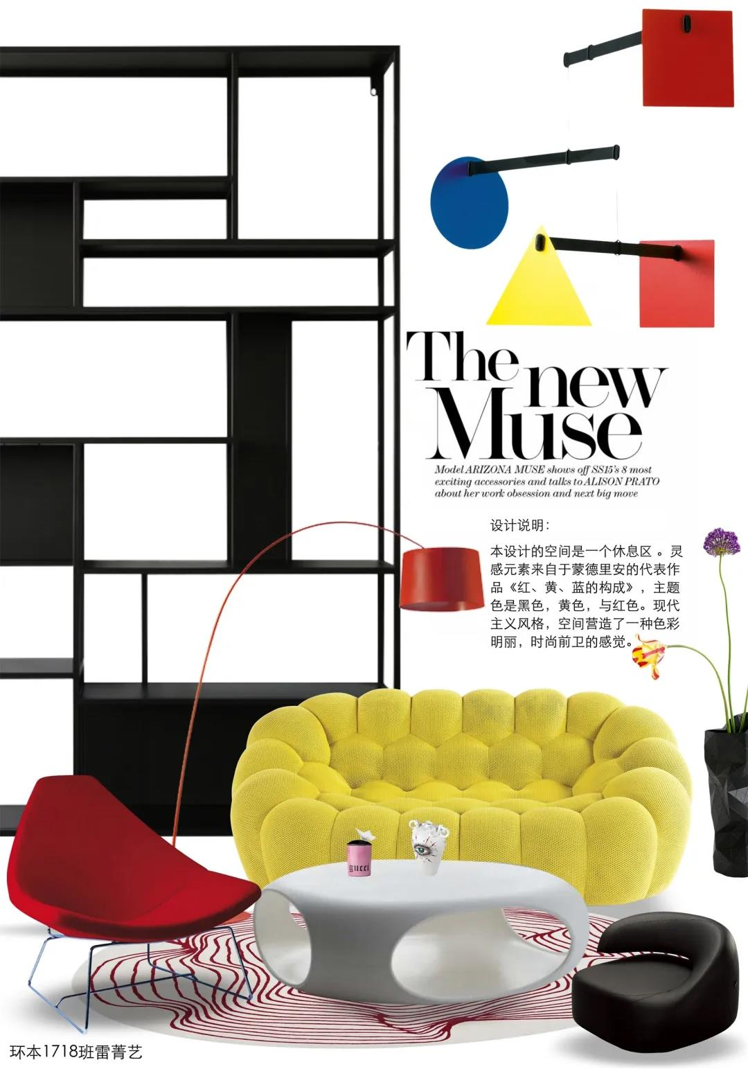 环艺1718陈泳灼 “红与黑”音乐主题客厅陈设