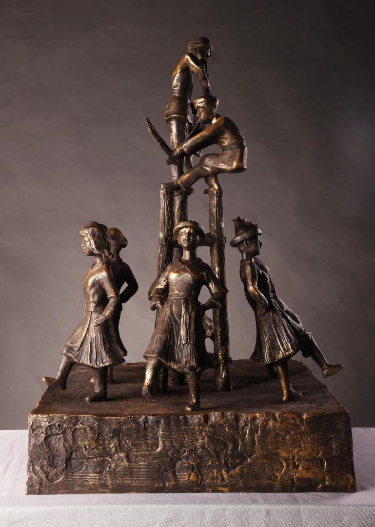 然而出乎意料的是,我们班坚持到最后居然真能做出三件紧扣题材和思想明确的艺术作品,它们分别是孙浩的《茶歌》、黄健武的《舞芦笙》和张尧的《那山那歌》,这三件作品光草图就被我否定了十次有余,泥稿更是耗时两个月。再到玻璃钢翻模,最后上色,他们都表现出了惊人的毅力。