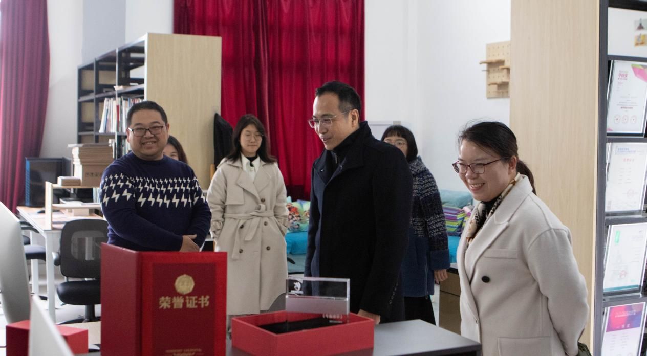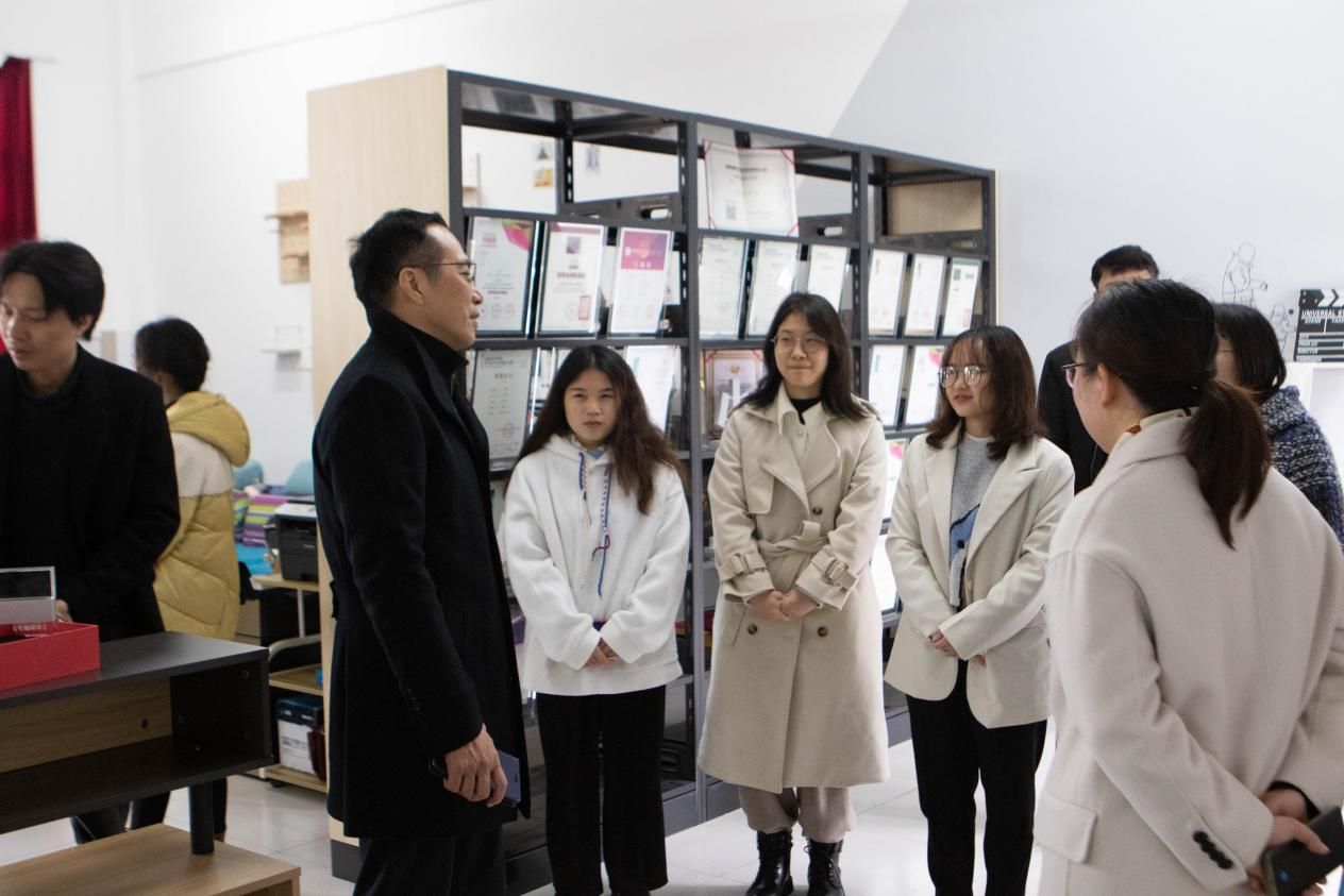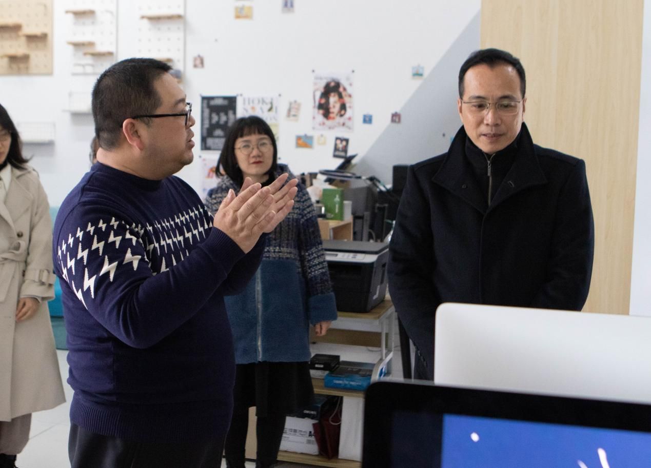 2021年12月29日,北海市党史办苏主任莅临北海艺术设计学院动画与传媒学院,视察《半条被子》创作团队情况,校党委副书记静月陪同前往制作现场。