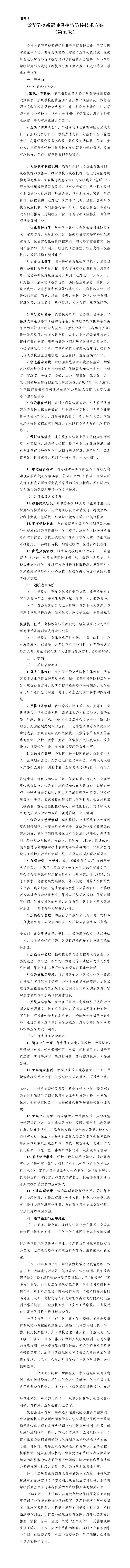 高等学校新冠肺炎疫情防控技术方案(第五版)