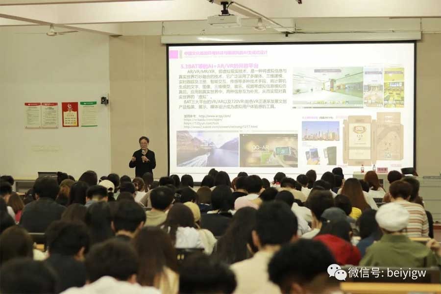 3月11日晚,于我校西校区伦理楼107,中国美术学院教授、博士生导师范凯熹为我校师生带来一场题为《中国文化基因符号转译与国潮风的AI生成式设计》的精彩讲座,讲座由设计艺术学院副院长白建强主持。