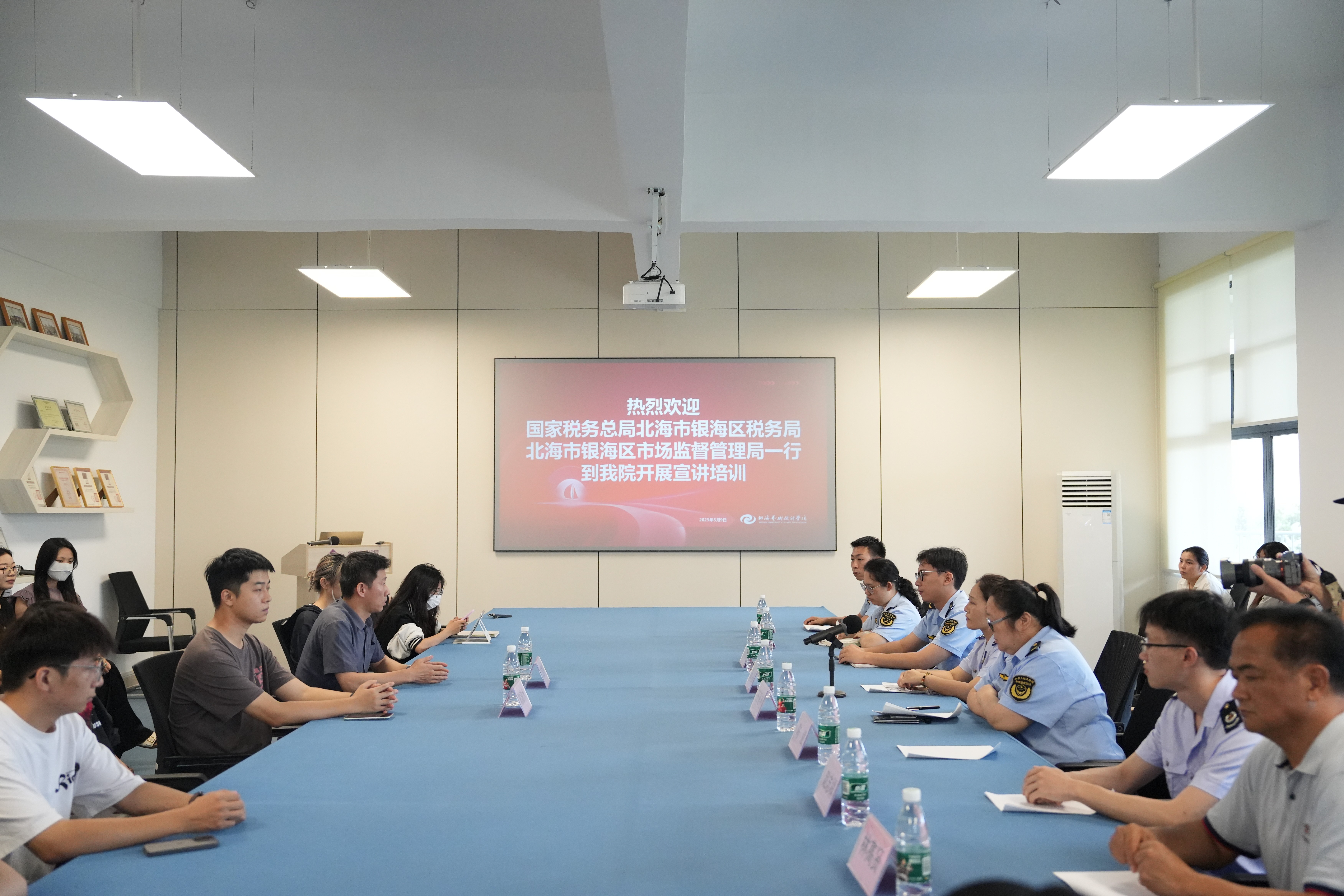 5月9日,于伦理楼408室,设计艺术学院组织开展政策宣讲培训活动。此次活动邀请国家税务总局北海市银海区税务局、北海市银海区市场监督管理局的专家领导,围绕“政策赋能 - 专创融合 工商注册 - 税务减免”相关政策展开培训,为学生创新创业与就业发展注入新动力。