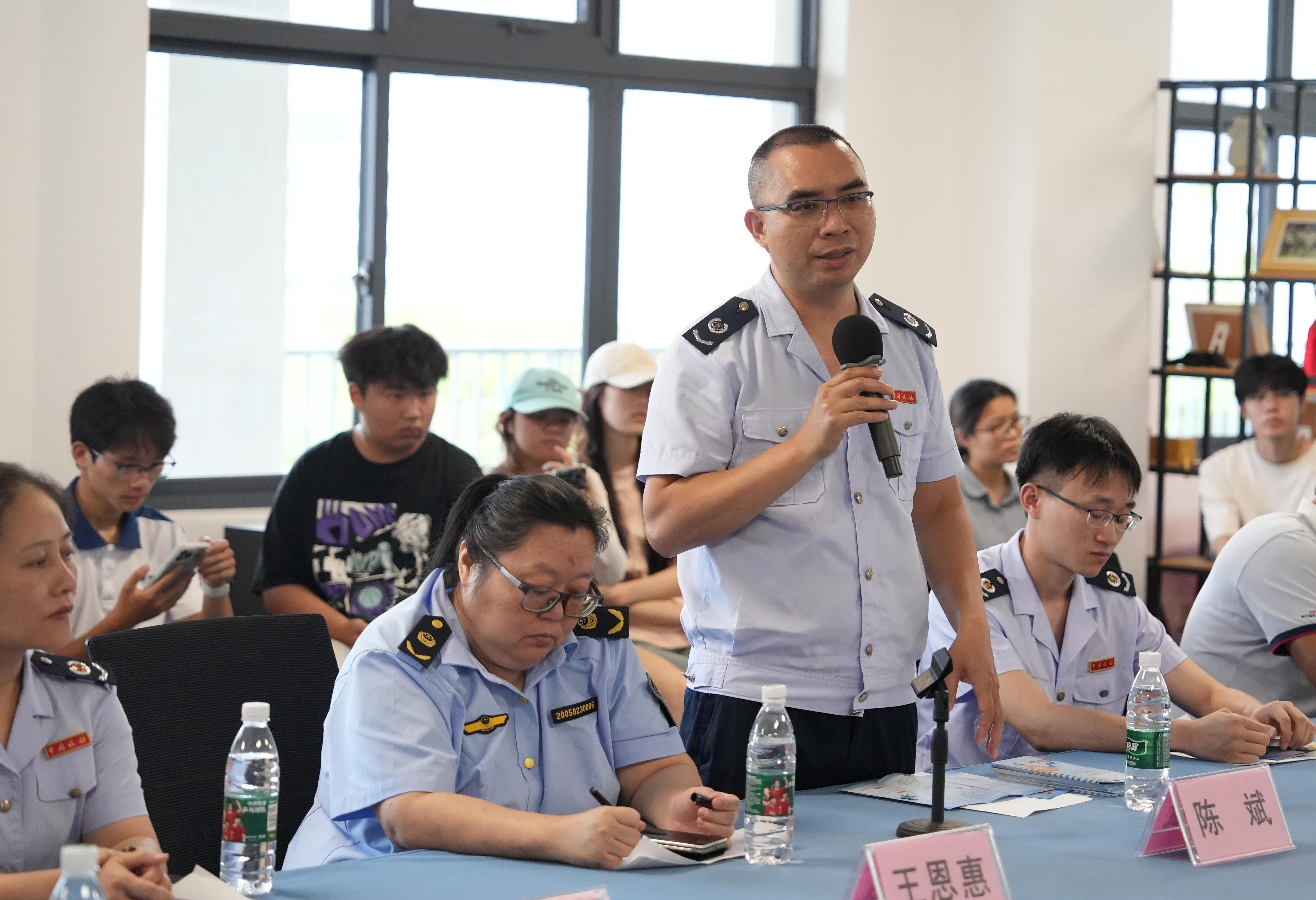 互动环节中,学生们积极提问,问题主要集中在大学生创业税收补贴、税收地点等方面。王恩惠副局长与工作人员林高贤凭借丰富的专业知识和实践经验,耐心细致地为学生们答疑解惑,现场交流融洽。