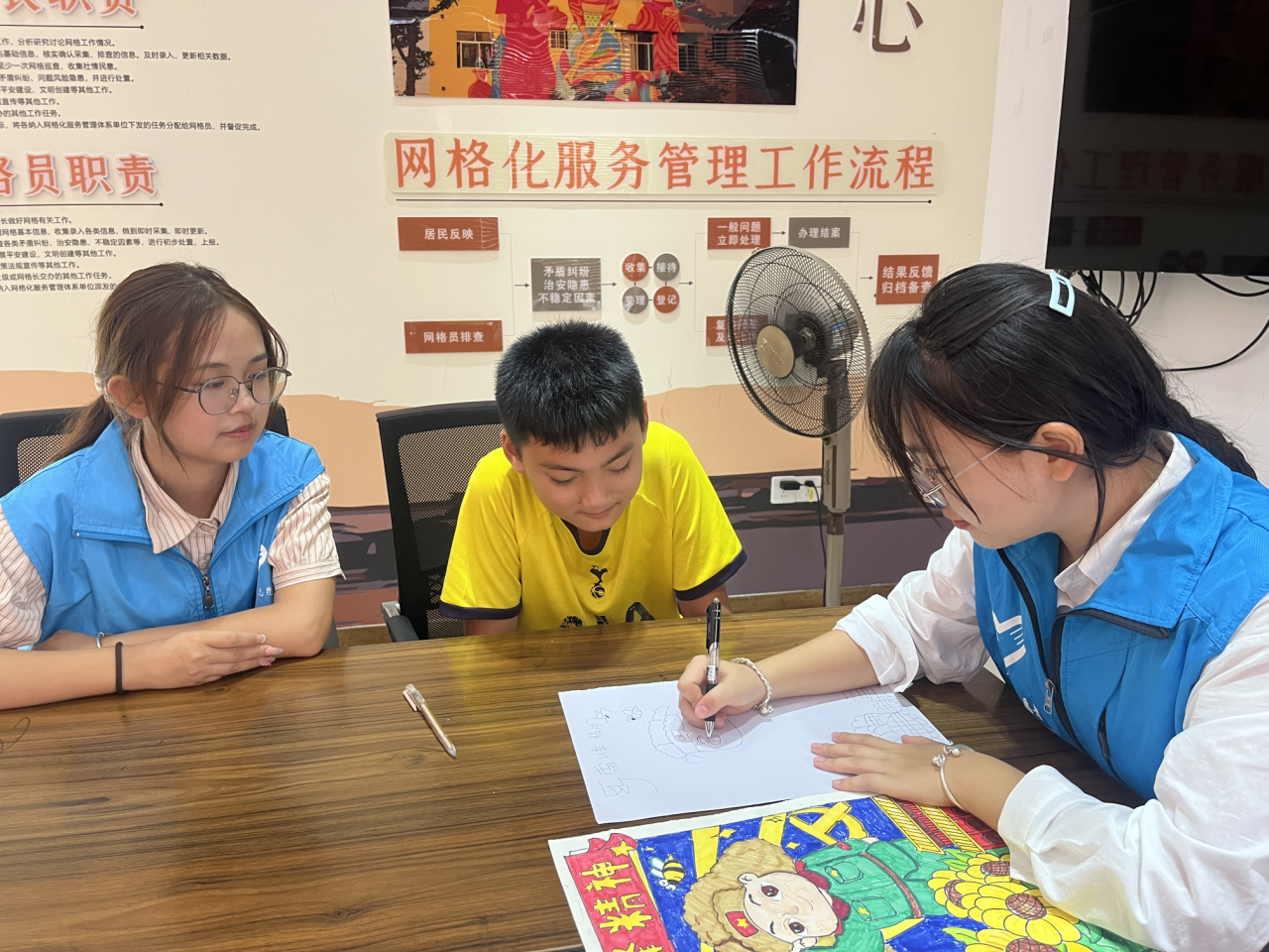 一声声彩笔涂刷伴随着志愿者们讲解的声音 ,小朋友们的画顺利完成了!多么生动的色彩,多么和谐的画面。小朋友们骄傲地举起手中的作品向我们展示他们的欢乐和心得,志愿者们也是收获满满。